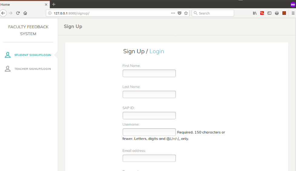 Fig: Student Feedback Form
